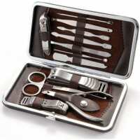 Mens 12 piece stainless steel nail manicure grooming kit gift set
