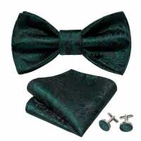 Emerald & Black Paisley Self Tie Bow Tie, Cufflink And Handkerchief Set