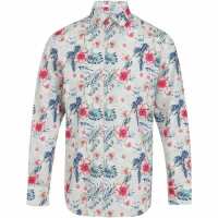 Grey & White Floral Print Regular Fit Cotton Shirt
