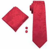 Red paisley silk wedding tie, pocket square & cufflink set
