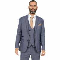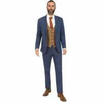 Jenson Samuel Lincoln Herringbone Blue Three Piece Suit with Kelvin Oak Contrast Waistcoat