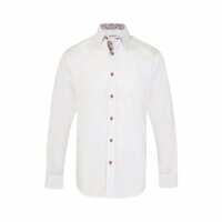Plain White Regular Fit Shirt with Blue & Red Paisley Trim
