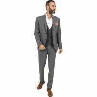 Jenson Samuel York Grey Check Three Piece Suit with Contrast Waistcoat