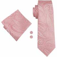 Pink paisley silk wedding tie, pocket square & cufflink set
