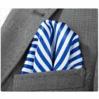 Blue & White Striped Silk Pocket Square