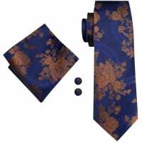 Navy floral silk tie, pocket square & cufflink set