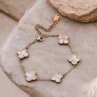 Rosegold And White Four Leaf Clover Bracelet