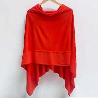 Tangerine Red Chiffon Edged Lightweight Poncho