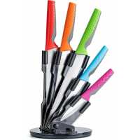 Kitchen Knife Set with Rotating Block | 5 Piece | Coloured Handles