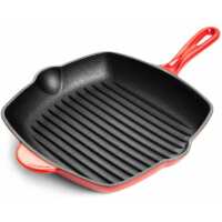 Pre-Seasoned Cast Iron Griddle Frying Pan - Square Enamelled Grill Pan - Red, 28cm