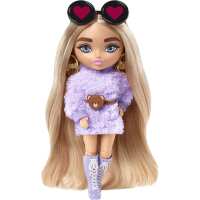 Barbie Extra Minis Doll 5.5in Wearing Fluffy Purple Fashion with Doll Stand