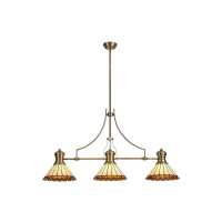 3 Light Telescopic Ceiling Pendant E27 With 30cm Tiffany Shade, Antique Brass, Amber, Crystal - 29.5cm Width