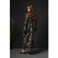 Eccentric Blooms Charcoal Crepe Long Kimono