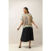 Embroidered Laurel Silk Tea Blouse S/M