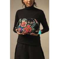 Woven Flower Black Velvet Pouch