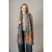 Chrysanthemum Grey Wool Scarf
