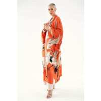 Stork Orange Crepe Long Kimono