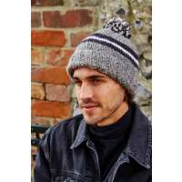 Pachamama - Retro Stripe Bobble Beanie Grey