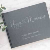 Happy Memories - Personalised Memorial / Condolence Book Natural Linen