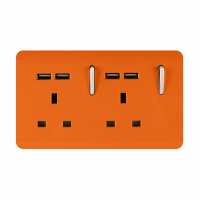 Trendi, Artistic 2 Gang 13Amp Switched Double Socket With 4X 2.1Mah USB Orange Finish, BRITISH MADE, (45mm Back Box Required), 10yrs Warranty