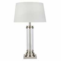 Pedestal Table Lamp - Glass Column & Satin Silver Base, Cream Shade