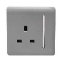 Trendi, Artistic Modern 1 Gang 13Amp Switched Socket Light Grey Finish, BRITISH MADE, (25mm Back Box Required), 10yrs Warranty