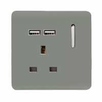 Trendi, Artistic Modern 1 Gang 13Amp Switched Socket WIth 2 x USB Ports Light Grey Finish, BRITISH MADE, (35mm Back Box Required), 10yrs Warranty