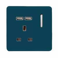 Trendi, Artistic Modern 1 Gang 13Amp Switched Socket WIth 2 x USB Ports Midnight Blue Finish, BRITISH MADE, (35mm Back Box Required), 10yrs Warranty