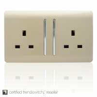 Trendi, Artistic Modern 2 Gang 13Amp Long Switched Double Socket Champagne Gold Finish, BRITISH MADE, (25mm Back Box Required), 10yrs Warranty