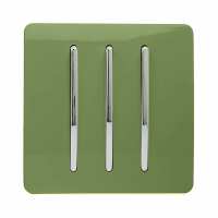Trendi, Artistic Modern 3 Gang 2 Way 10 Amp Rocker Moss Green Finish, BRITISH MADE, (25mm Back Box Required), 10yrs Warranty