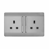 Trendi, Artistic Modern 2 Gang 13Amp Long Switched Double Socket Brushed Steel Finish, BRITISH MADE, (25mm Back Box Required), 10yrs Warranty