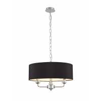 Banyan 3 Light Multi Arm Pendant, With 1.5m Chain, E14 Polished Chrome With 45cm x 15cm Faux Silk Shade, Black