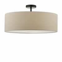 Riva 1 Light E27 Black Semi Flush Ceiling Fixture C/W Taupe Faux Silk 60cm Drum Shade With Soft White Acrylic Diffuser