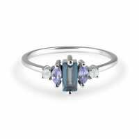 London Blue Topaz, Tanzanite & Moonstone Ring Sterling Silver J
